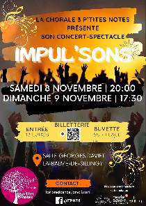 La chorale ‘‘3 p‘tites notes’’ est fière de vous annoncer ses prochains concerts-spectacles :